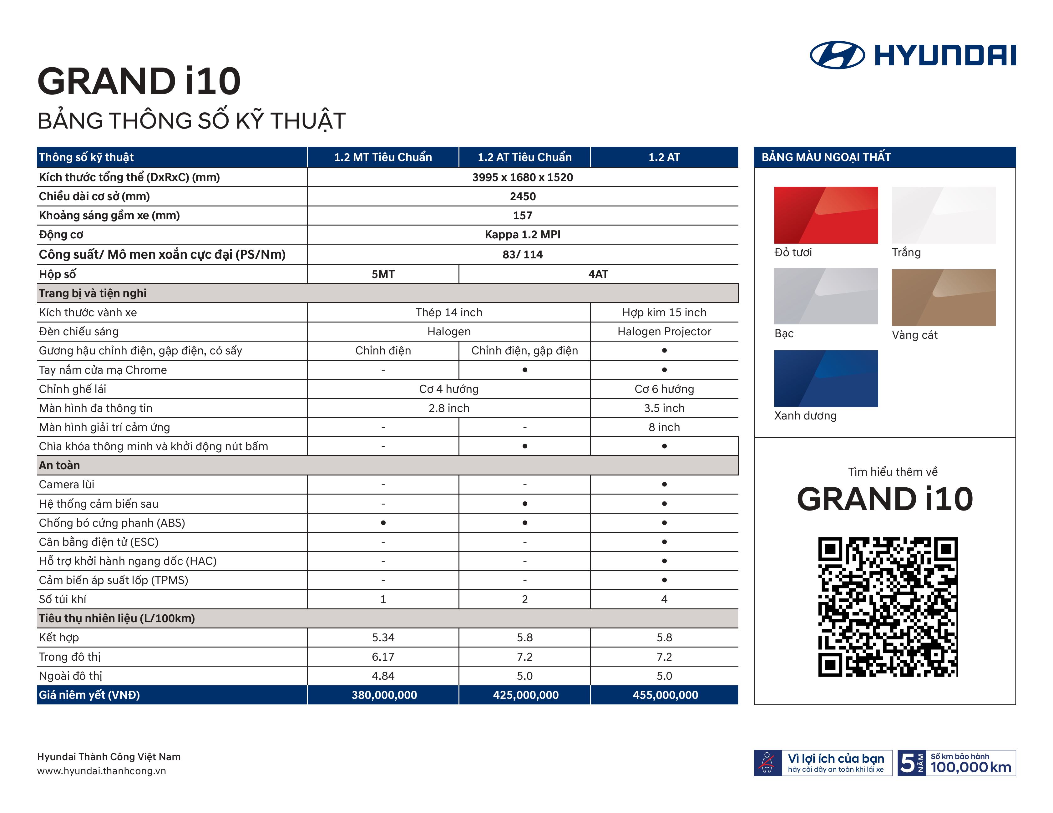 * Giá xe Grand i10 cực kì ưu đãi cùng các khuyến mãi tiền mặt, gói phụ kiện lên đến hàng chục triệu đồng siêu hấp dẫn cho khách hàng liên hệ trực tiếp trong tháng 06-2025 này. Gọi điện ngay để nhận tư vấn mua xe và chi tiết về chương trình khuyến mãi.* Xe nhập mới, giá xe Grand i10 cạnh tranh, phục vụ đa dạng mong muốn của quý khách hàng.* Chương trình tri ân khách hàng chỉ áp dụng duy nhất trong tháng 06-2025 tại Hyundai Phúc Yên.LIÊN HỆ NGAYHotline - 0961.629.313 - Hùng Thường