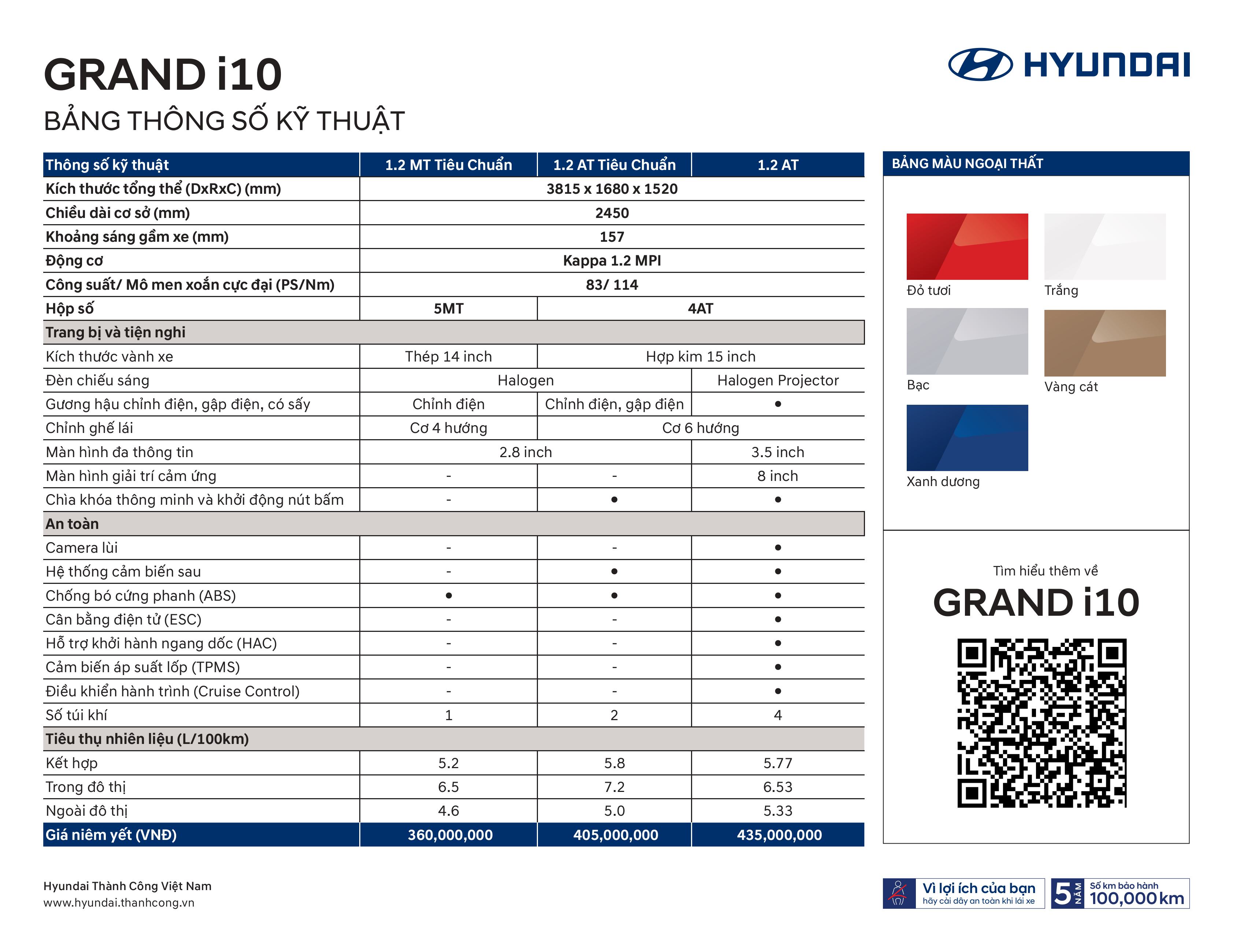 * Giá xe Grand i10 cực kì ưu đãi cùng các khuyến mãi tiền mặt, gói phụ kiện lên đến hàng chục triệu đồng siêu hấp dẫn cho khách hàng liên hệ trực tiếp trong tháng 06-2025 này. Gọi điện ngay để nhận tư vấn mua xe và chi tiết về chương trình khuyến mãi.* Xe nhập mới, giá xe Grand i10 cạnh tranh, phục vụ đa dạng mong muốn của quý khách hàng.* Chương trình tri ân khách hàng chỉ áp dụng duy nhất trong tháng 06-2025 tại Hyundai Phúc Yên.LIÊN HỆ NGAYHotline - 0961.629.313 - Hùng ThườngCác đặc tính nổi bật trên Grand i10 Không gian rộng rãi trong thiết kế nhỏ gọn