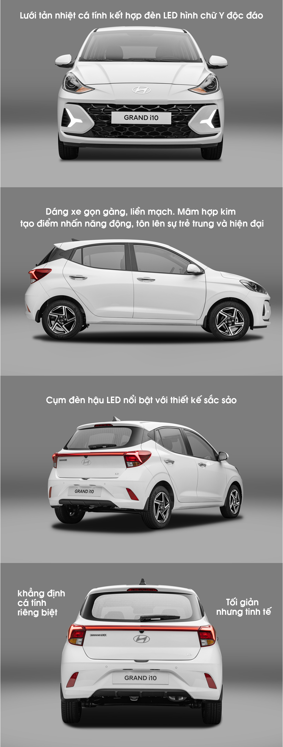 New Grand i10 thu hút mọi ánh nhìn trên mọi góc độ với các đường nét thời trang thể thao phá cách mang màu sắc của nghệ thuật đương đại