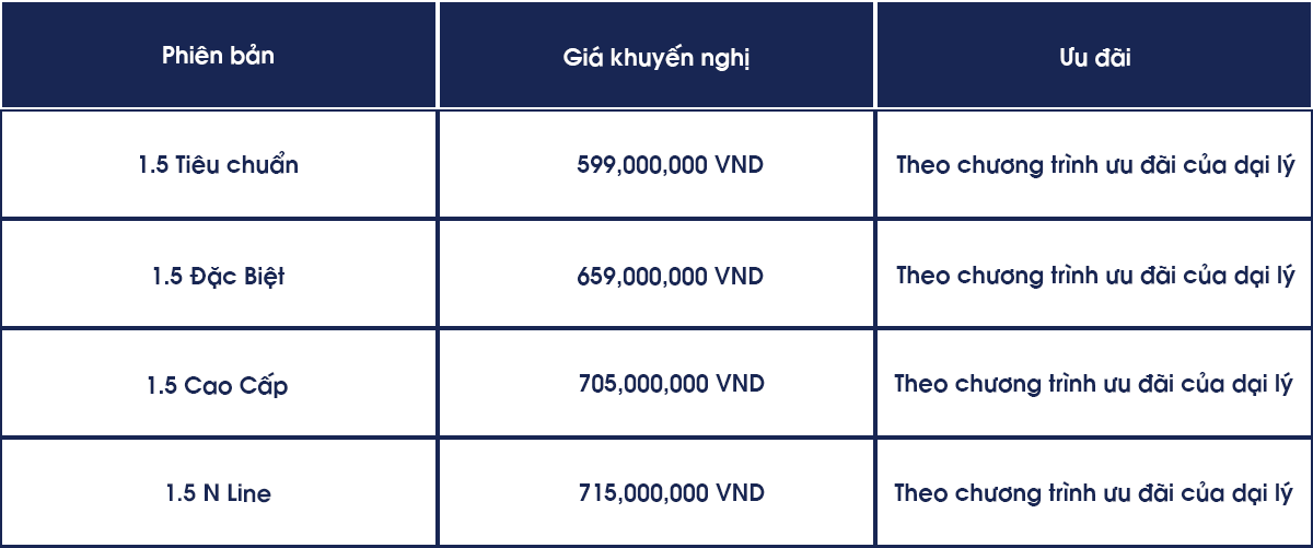 Hyundai New Creta sẽ chính thức có mặt tại hệ thống đại lý Hyundai toàn quốc từ ngày 03/06/2025, với phiên bản: Tiêu chuẩn, Đặc biệt và Cao cấp, cùng phiên bản thể thao N Line. Xe có 6 tùy chọn màu sắc: Trắng, Đỏ, Đen, Bạc, Xám Kim loại, Xanh Dương. Xe được bảo hành 5 năm hoặc 100.000 km (tùy điều kiện nào đến trước).