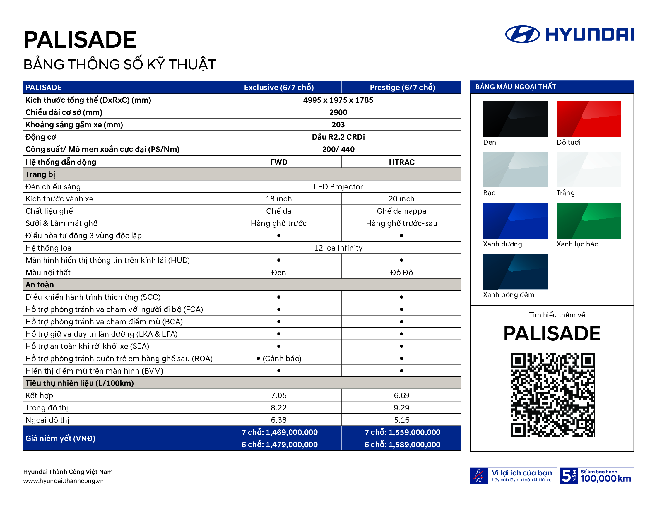 * Giá xe Palisade cực kì ưu đãi cùng các khuyến mãi tiền mặt, gói phụ kiện lên đến hàng chục triệu đồng siêu hấp dẫn cho khách hàng liên hệ trực tiếp trong tháng 06-2025 này. Gọi điện ngay để nhận tư vấn mua xe và chi tiết về chương trình khuyến mãi.* Xe nhập mới, giá xe Palisade cạnh tranh, phục vụ đa dạng mong muốn của quý khách hàng.* Chương trình tri ân khách hàng chỉ áp dụng duy nhất trong tháng 06-2025 tại Hyundai Phúc Yên.LIÊN HỆ NGAYHotline - 0961.629.313 - Hùng Thường
